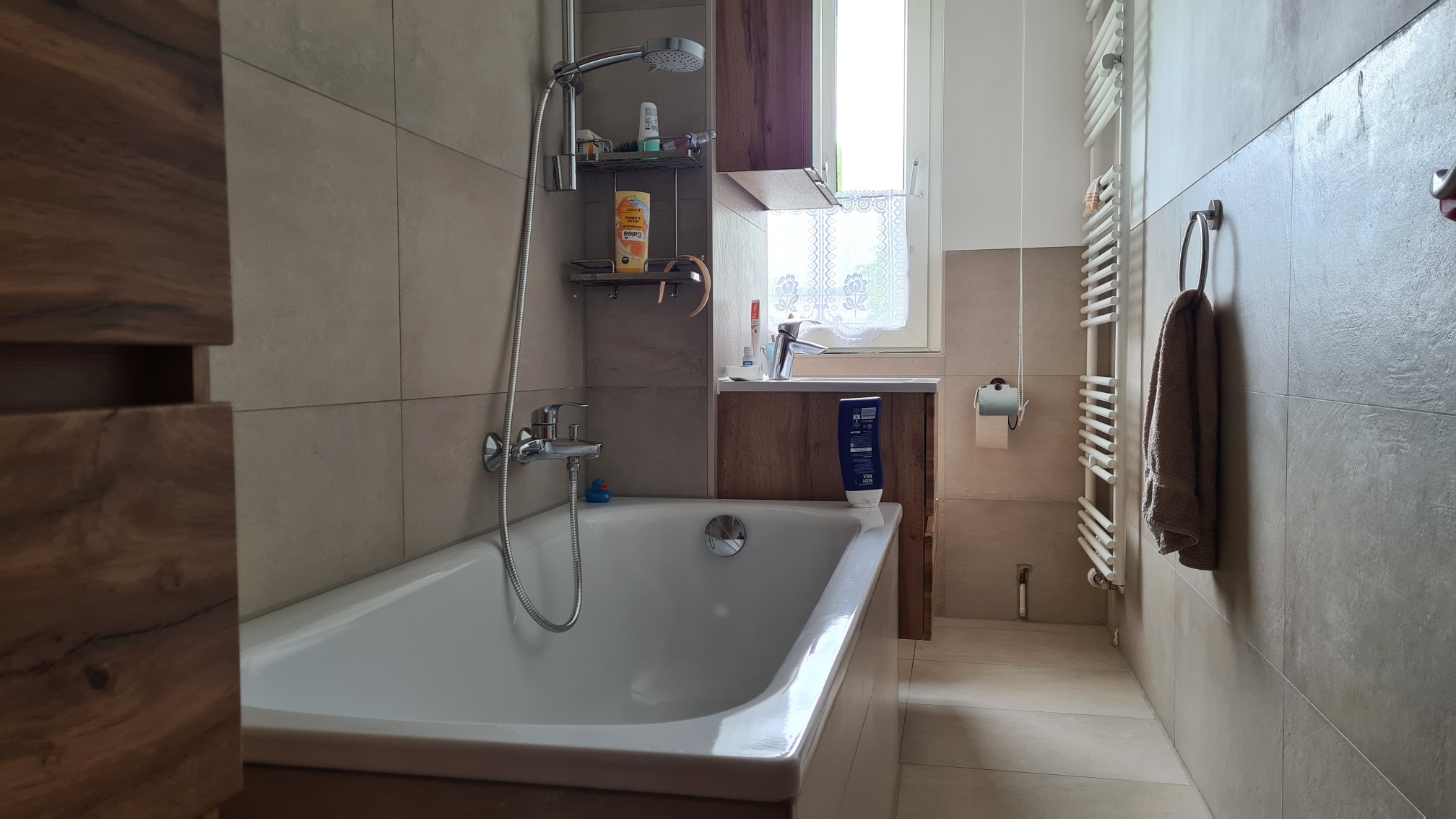 - Ausstattung des Bades Badewanne, Fenster