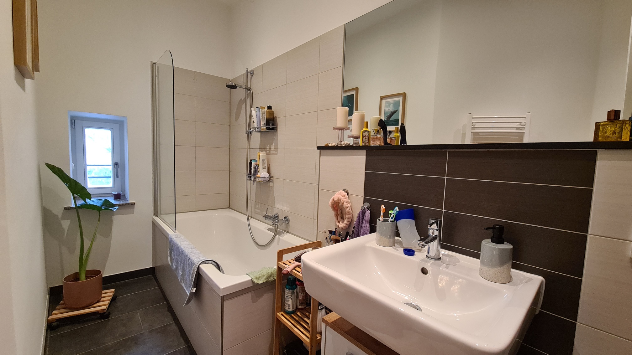 - Ausstattung des Bades Fenster, Badewanne