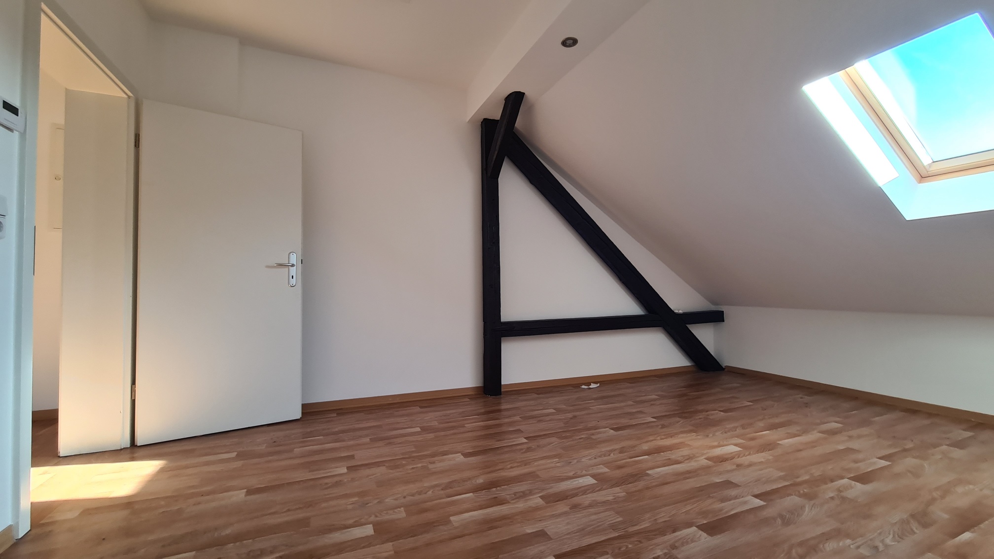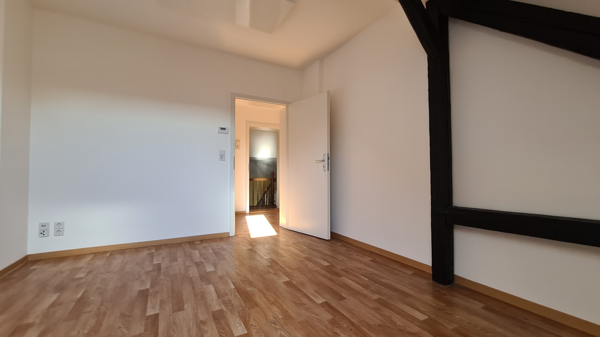 Die romantischen Balken unterstreichen die Individualität und sorgen für den besonderen Touch dieser Wohnung.