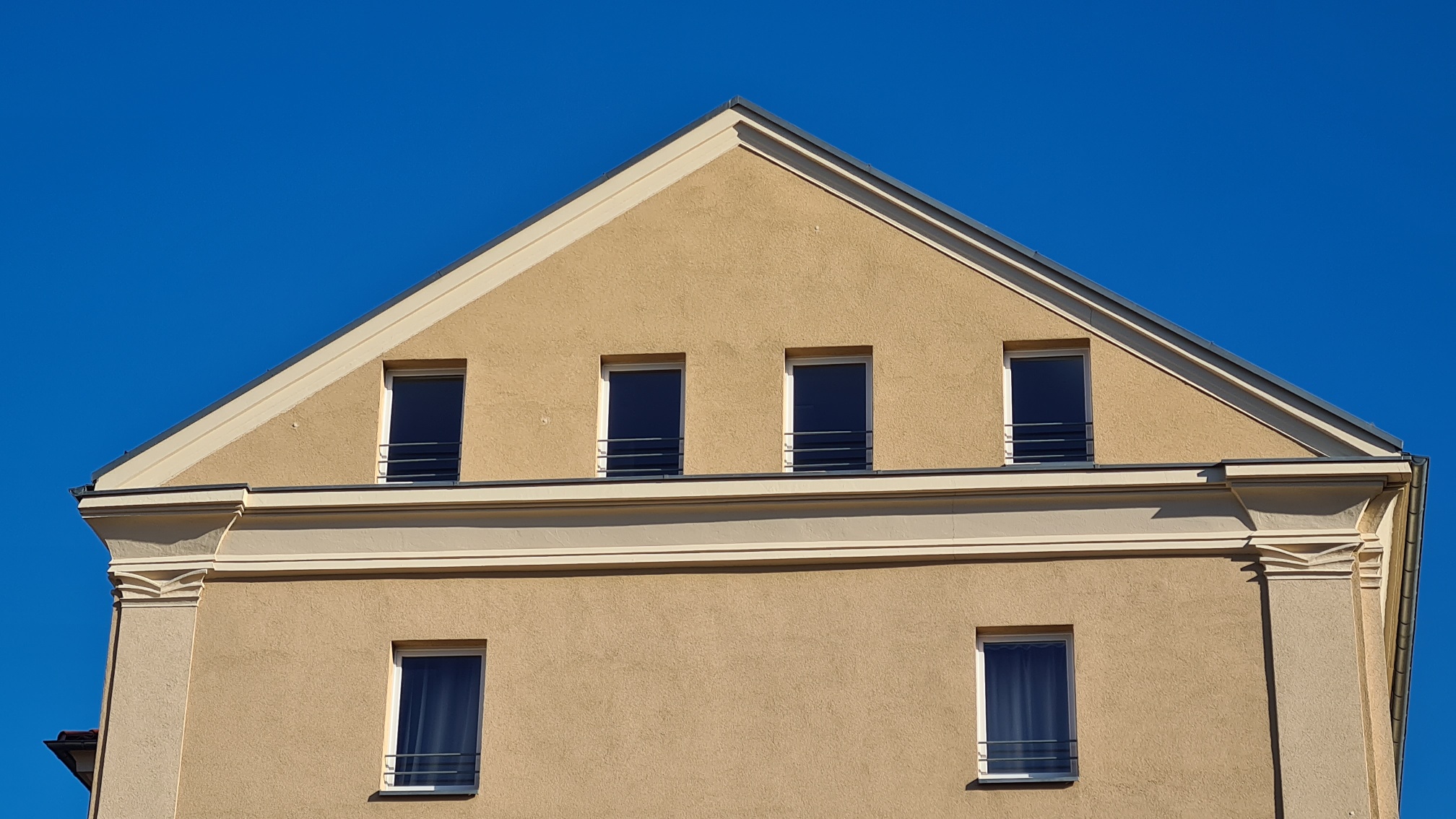 Es handelt sich um ein Eckhaus, die Fenster des Wohn- u. Schlafzimmers liegen zur Gorkistraße.