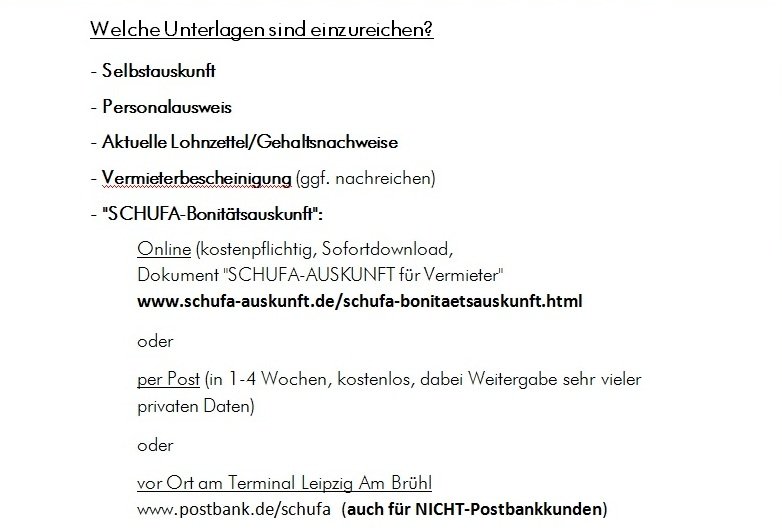 4. SCHUFA-Auskunft (Anmietung nur OHNE neg. SCHUFA-Einträge möglich)